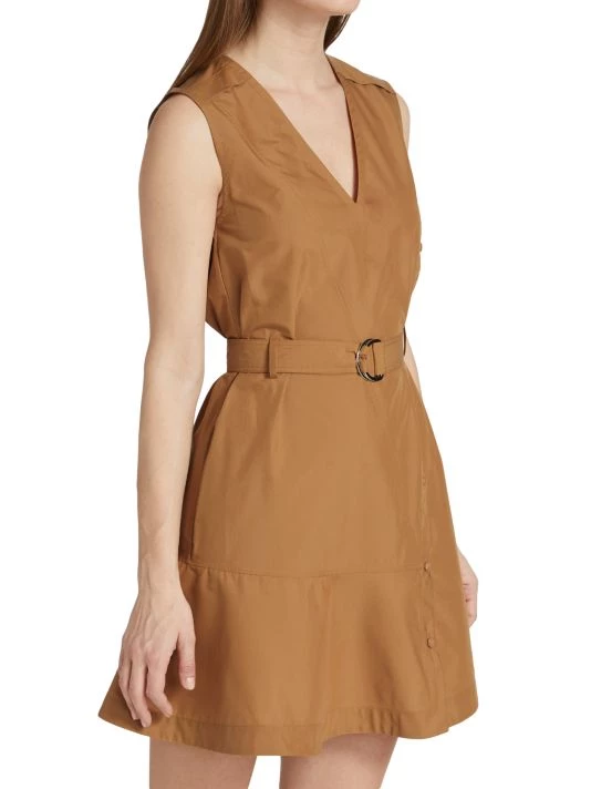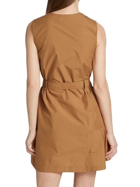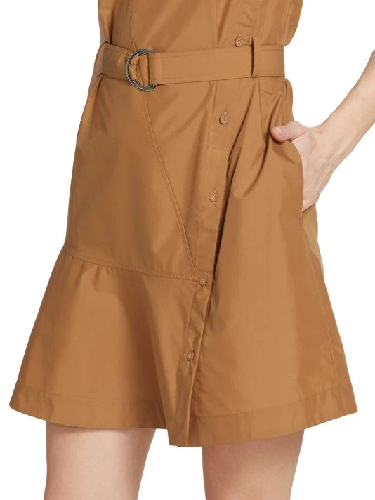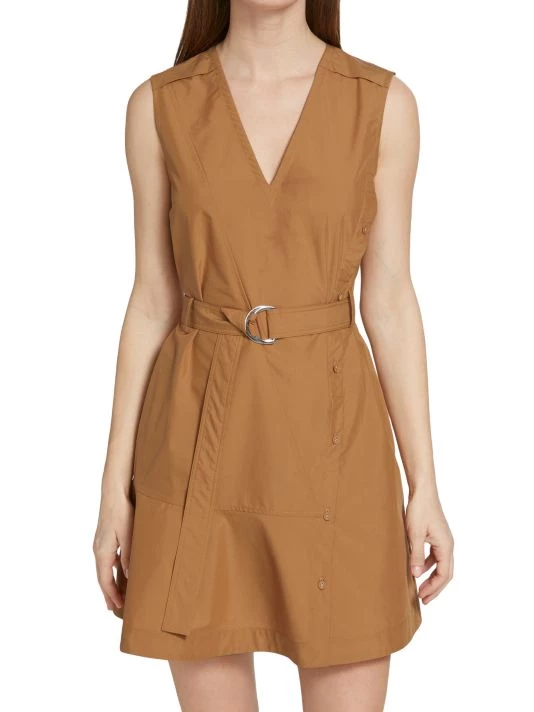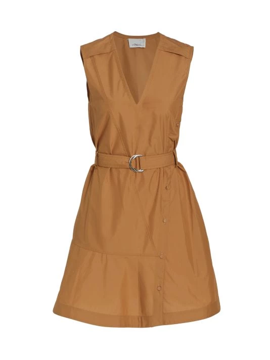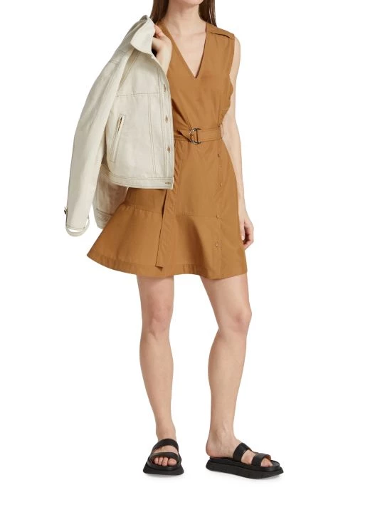 Crafted of crisp cotton poplin, 3.1 Phillip Lim’s sleeveless utility minidress features a V-neck, a button-detailed skirt, and a belted waist for a more defined shape.