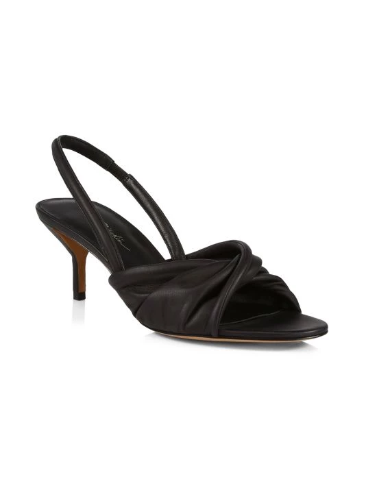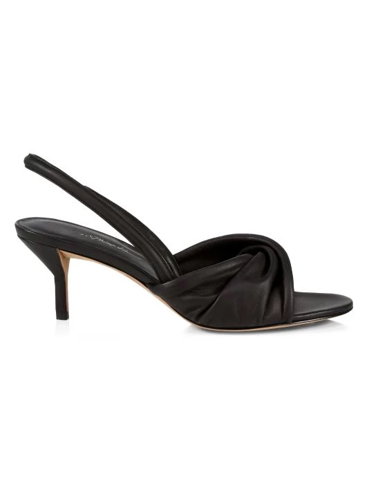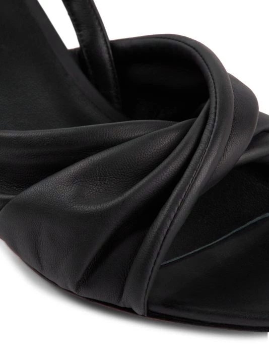 Supple lambskin leather sandals elevated with a twisted strap and chic kitten heel.