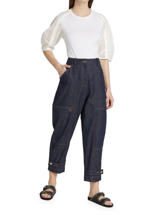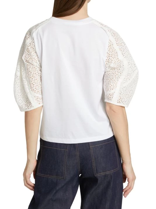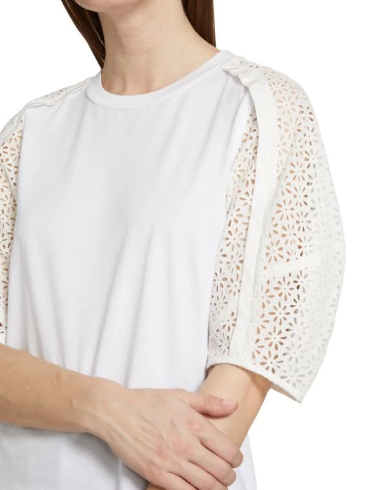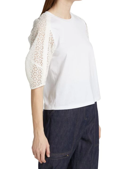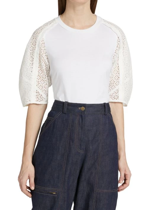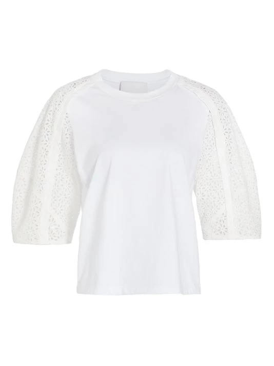 Crafted of cotton, 3.1 Phillip Lim’s relaxed t-shirt features a crewneck with broderie anglaise embroidered sculpted short sleeves.