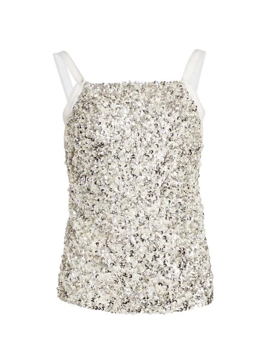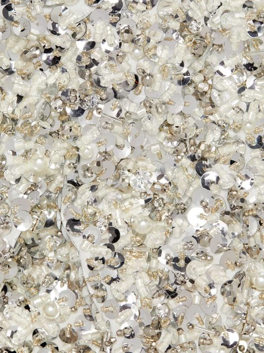 This open tie-back top is embellished with shining sequins, beads, and crystals.