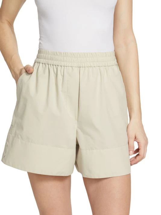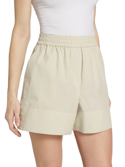 3.1 Phillip Lim’s boxer shorts are crafted of crisp poplin, featuring an elasticized high-rise waist and slit side pockets.