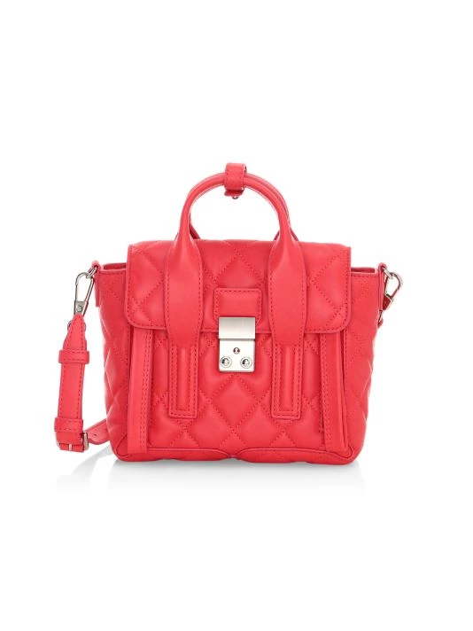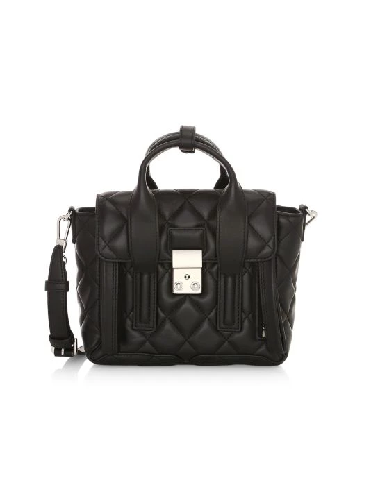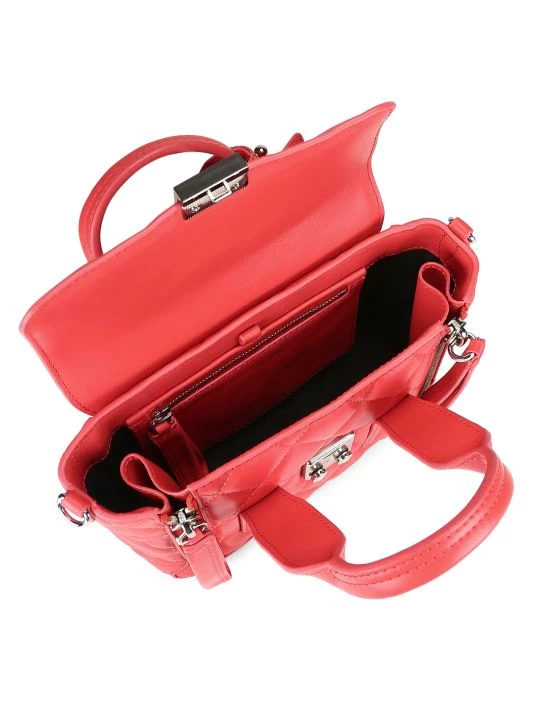 A luxurious quilted leather design with tonal stitching, gleaming hardware, top handles and an adjustable, removable strap.