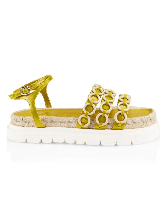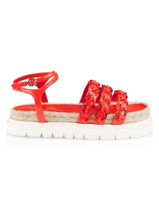 These platform sandals feature a lugged sole with an espadrille midsole and ring accents at the straps.