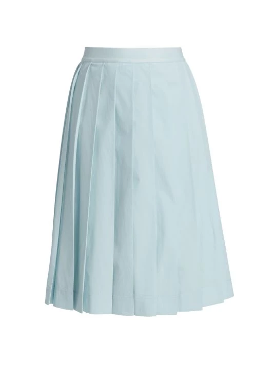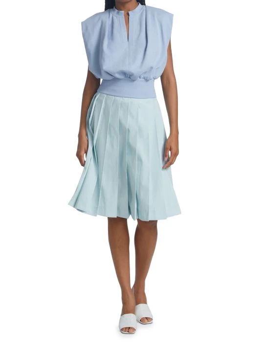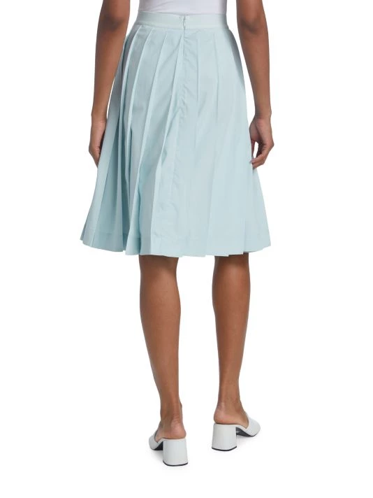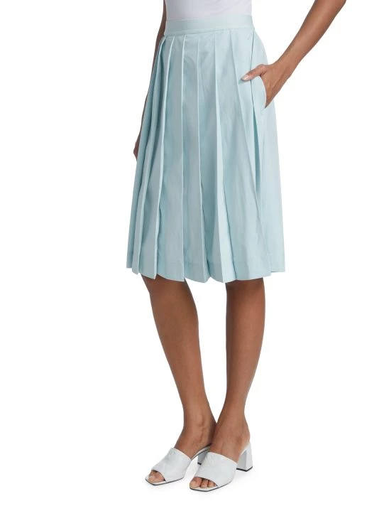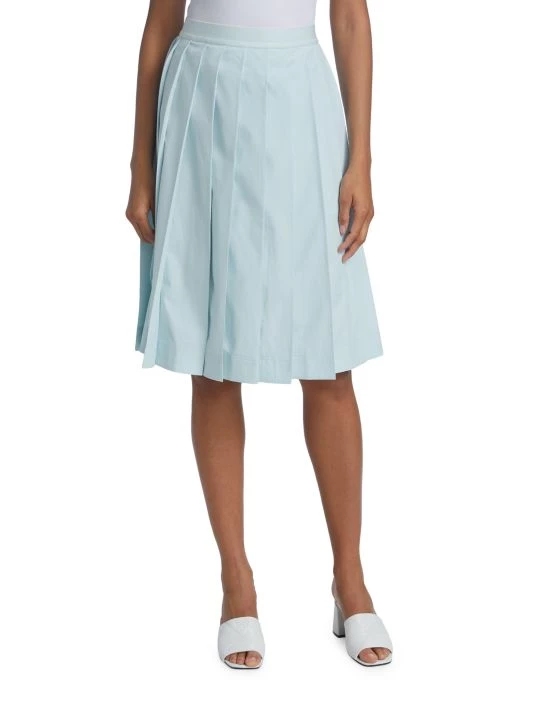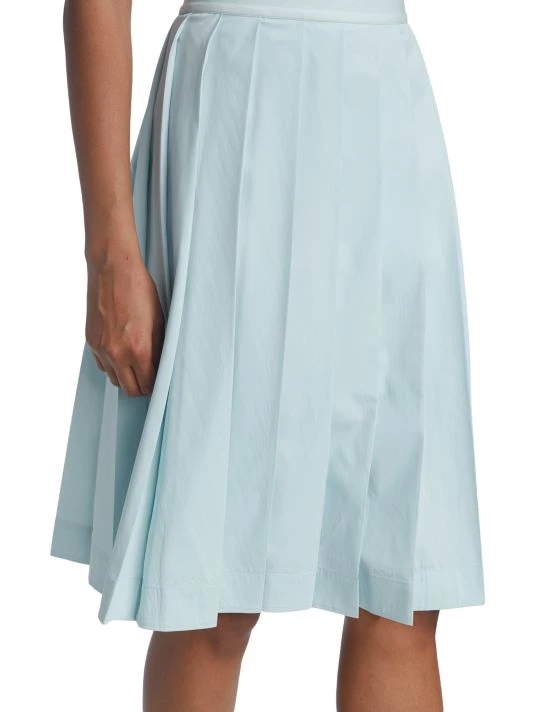This knee-length skirt features a pleated silhouette with a banded waist.