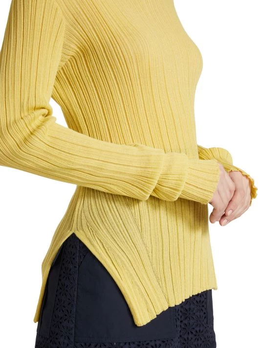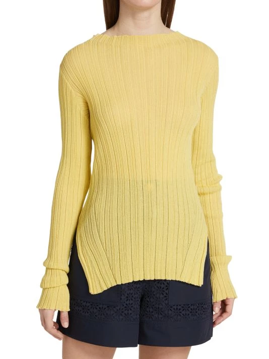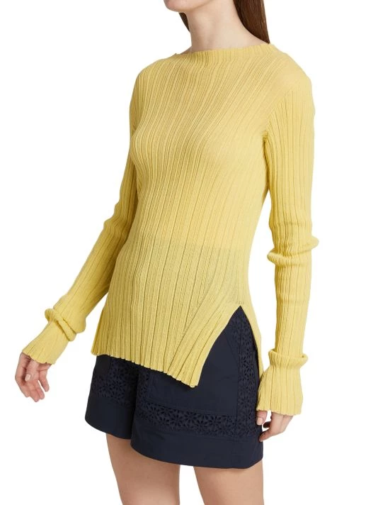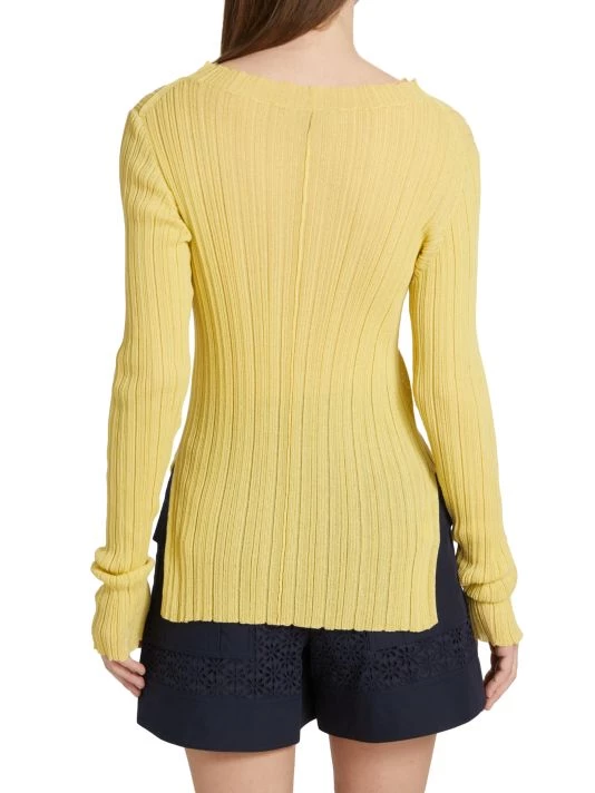 Crafted of stretch cotton, 3.1 Phillip Lim’s sheer ribbed polo top features a crewneck and long sleeves.