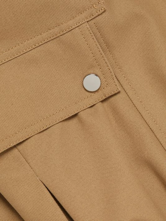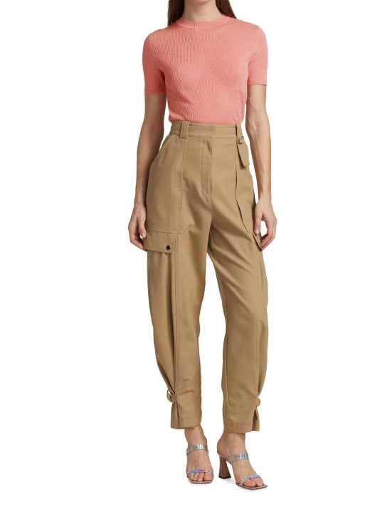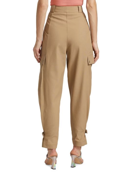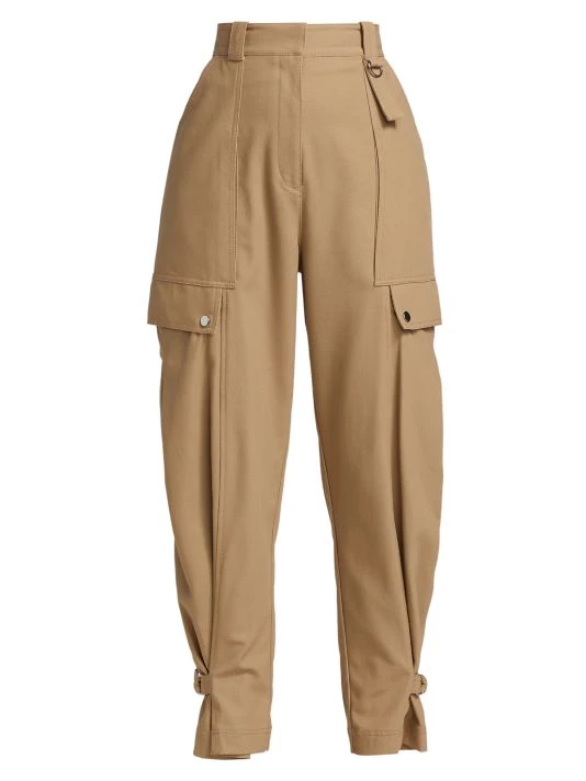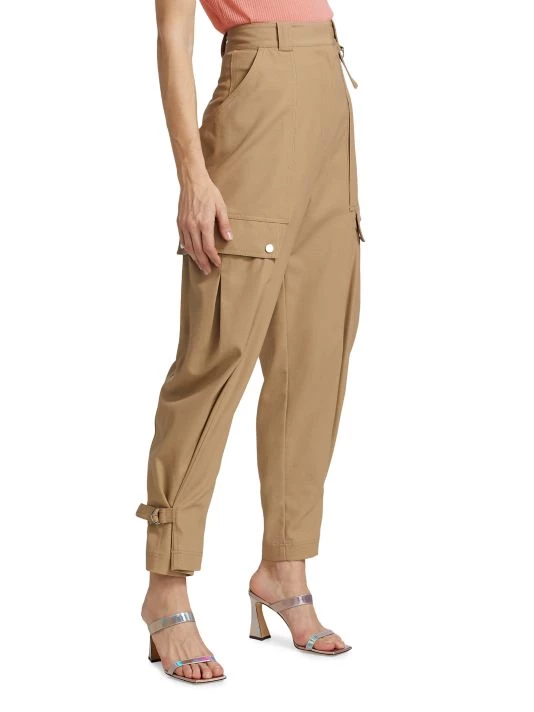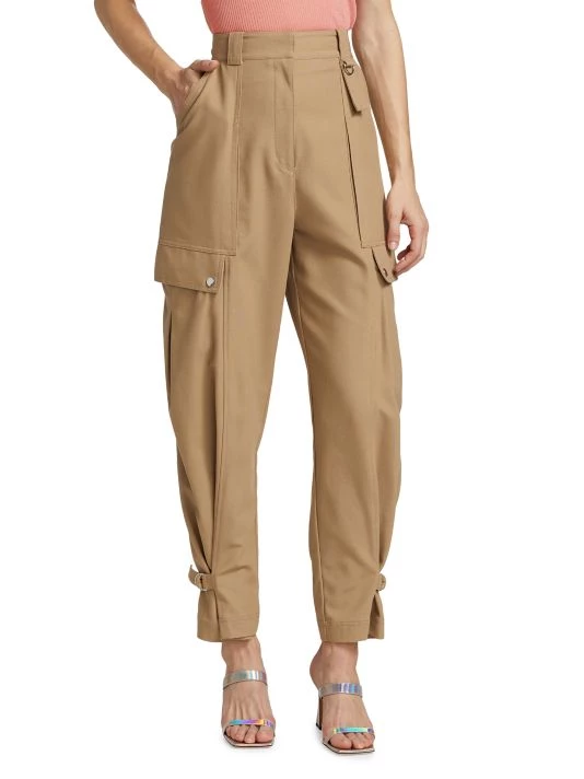 Cotton pants tapered at the cuffs features cargo-style flap pockets and buckle details.