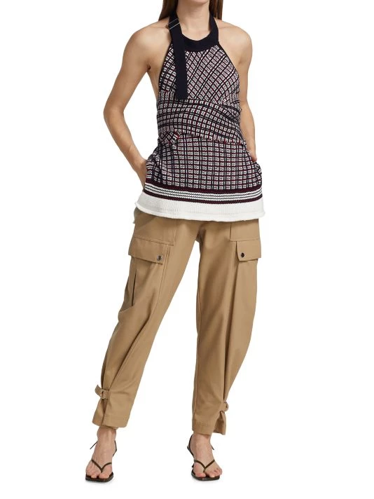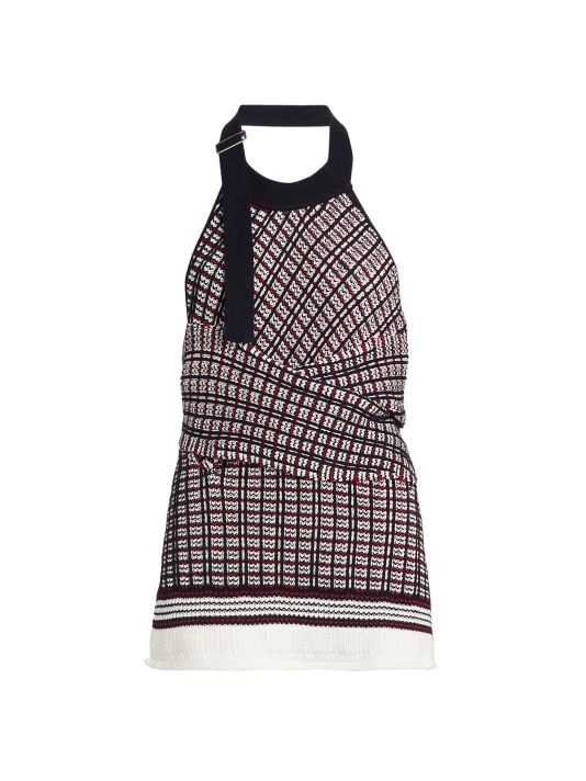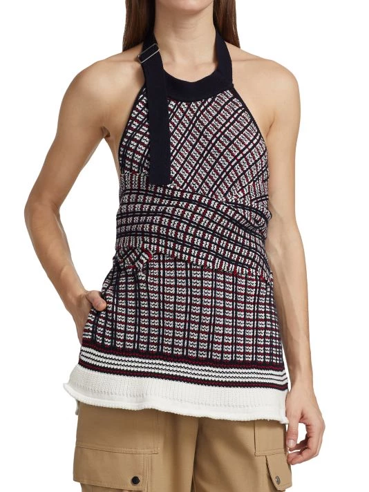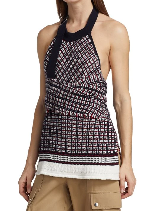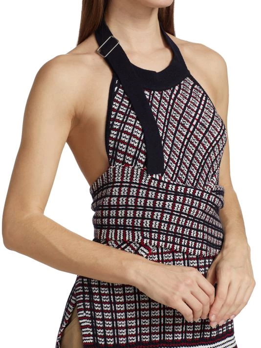 This plaid wool-blend halter top features an adjustable ring neckline and a wrap bodice with faux sleeves that tie at the back.