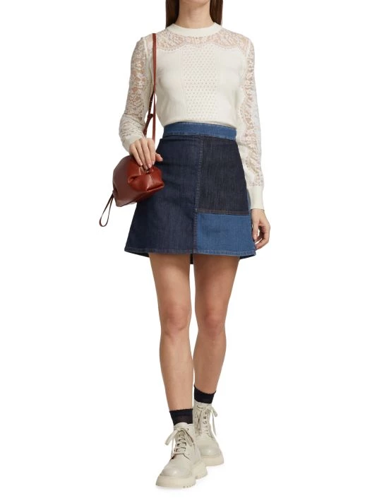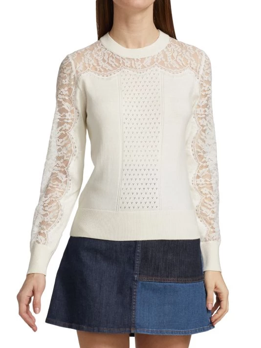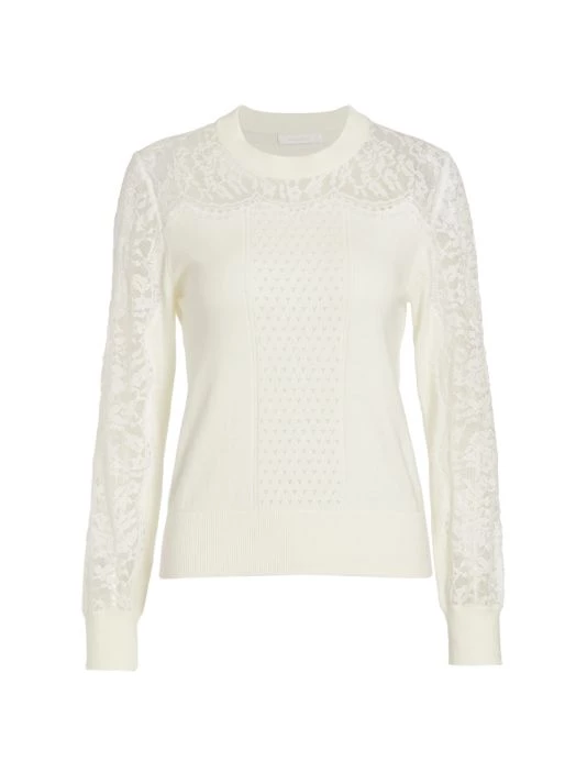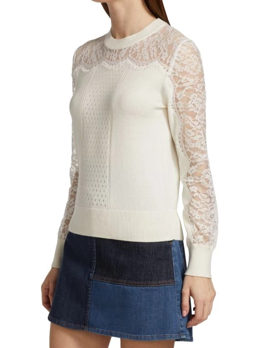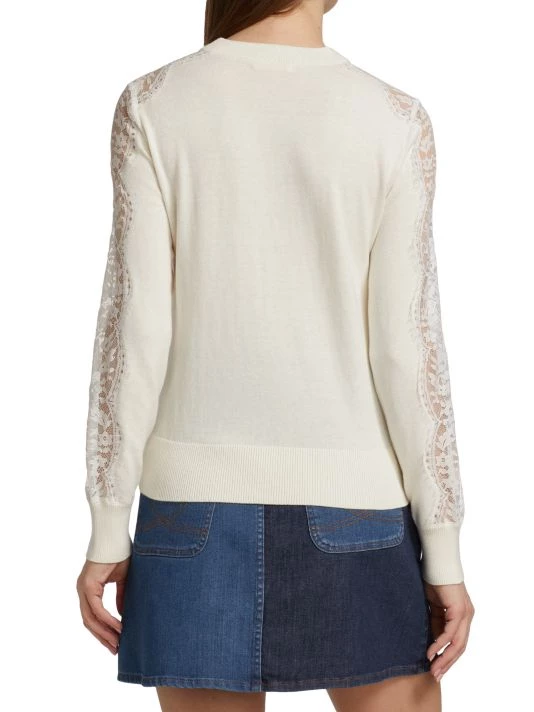 This crewneck sweater from See by Choléis crafted of a cotton-cashmere blend with eyelash lace paneling. Pointelle details at the center front and rib-knit trim complete this elevated style.