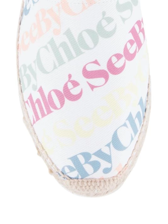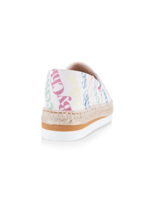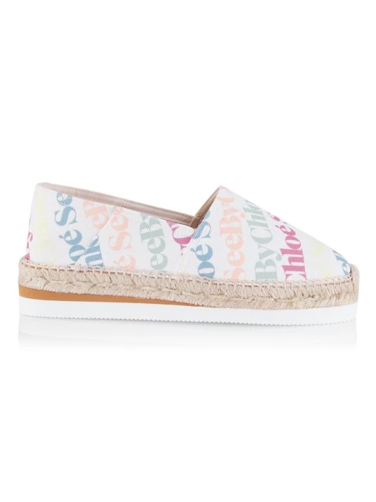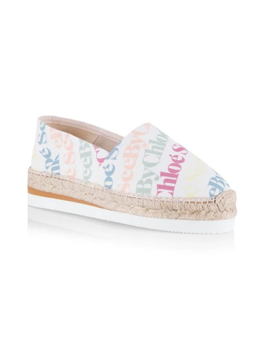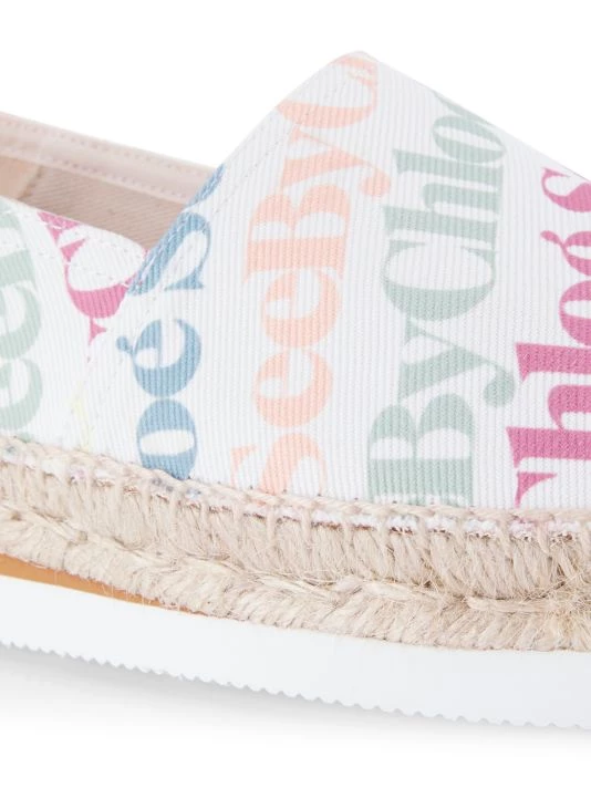 Resting on a stacked sole, See by Chloé’s Glyn espadrilles are crafted of canvas decorated in signature multicolored logo.