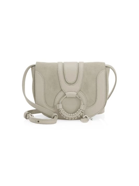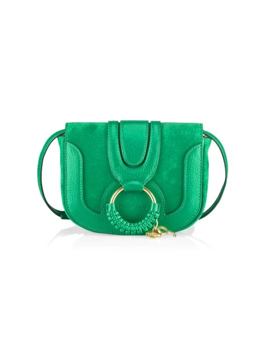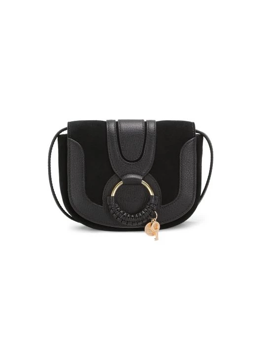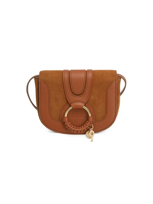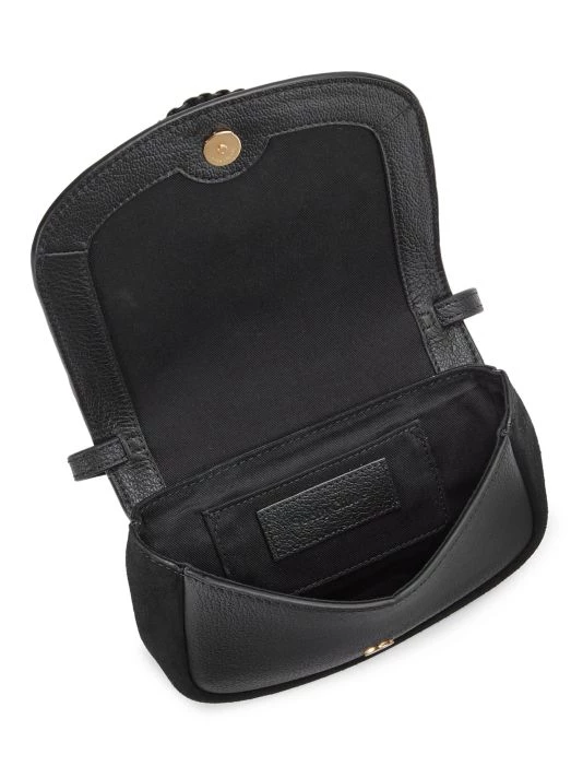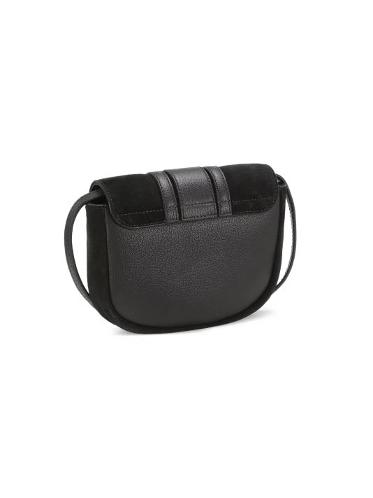 Everyday crossbody bag in supple suede and textured leather with charm accent.