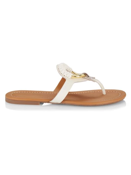 Made in Spain, See by Chloé’s Hana thong sandals are crafted of rich leather. This slip-on pair is detailed with a braided metal ring.