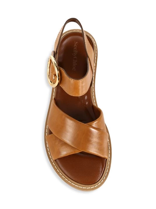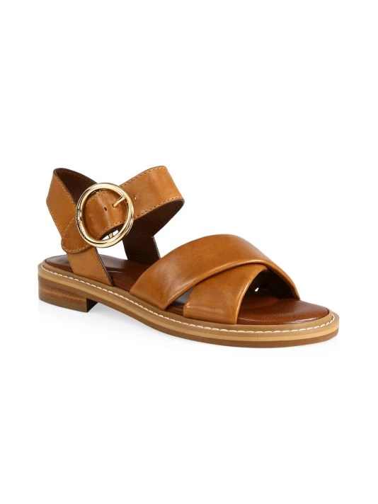 These flat leather sandals feature an oversize signature ring, large padded strap for great comfort.