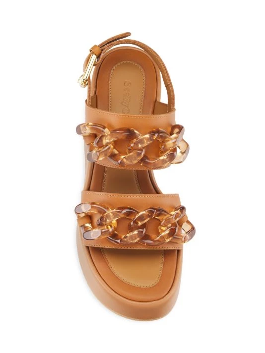 Adorned with translucent chunky chains, See by Chloé’s Mahe sandals are made in Spain of rich leather. This decorative pair is anchored by a platformed wedge heel.