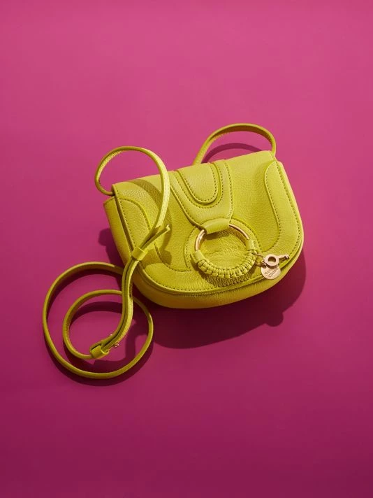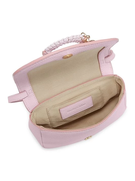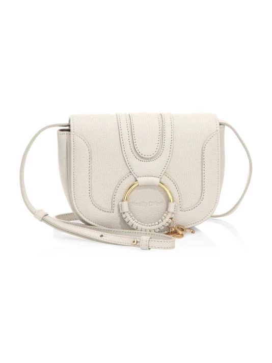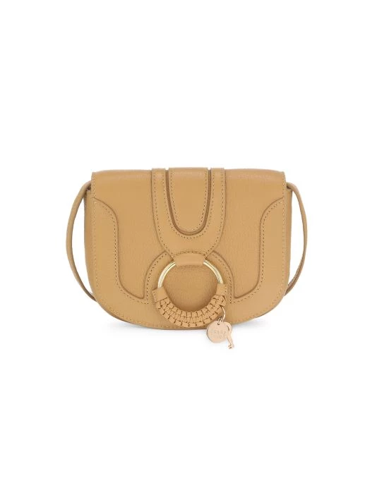 Leather shoulder bag adorned with signature charm-adorned hoop on front.