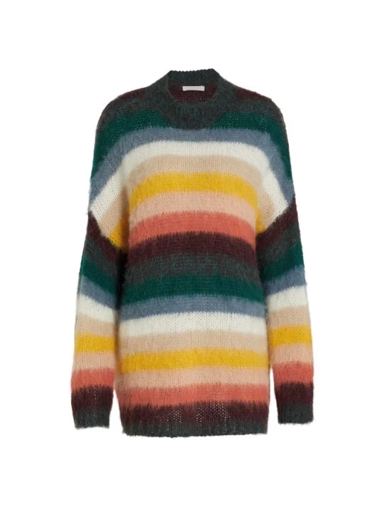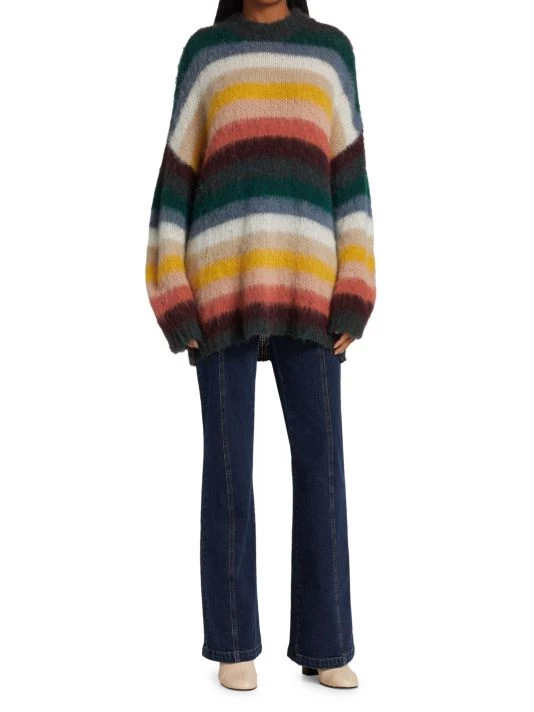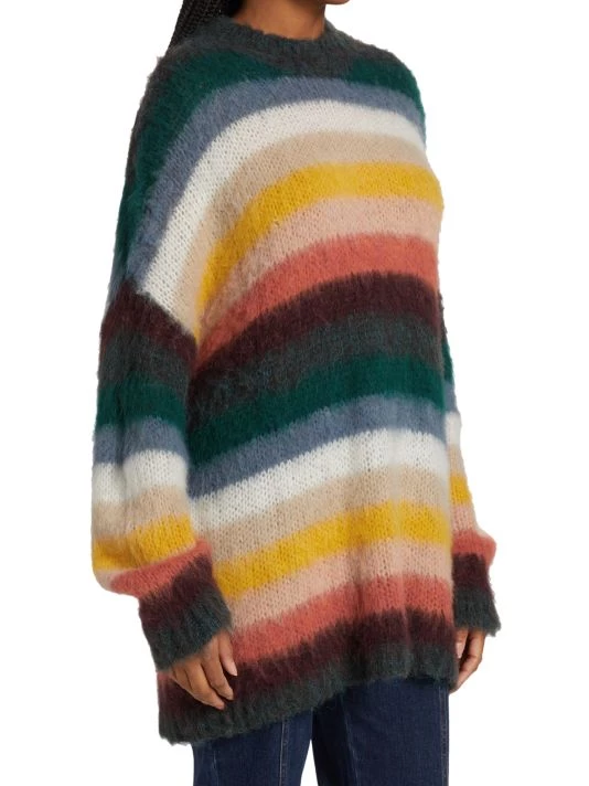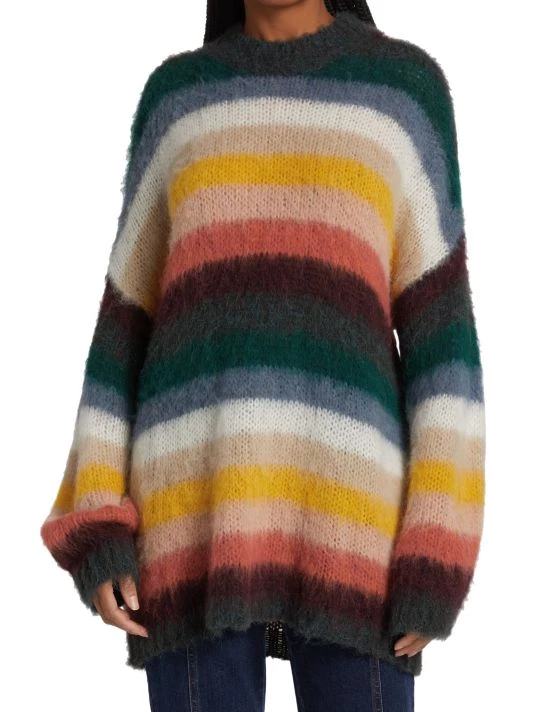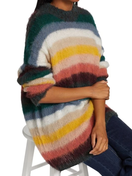 Bold stripes cover this alpaca-blend sweater, knit to a relaxed oversized fit.