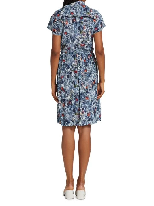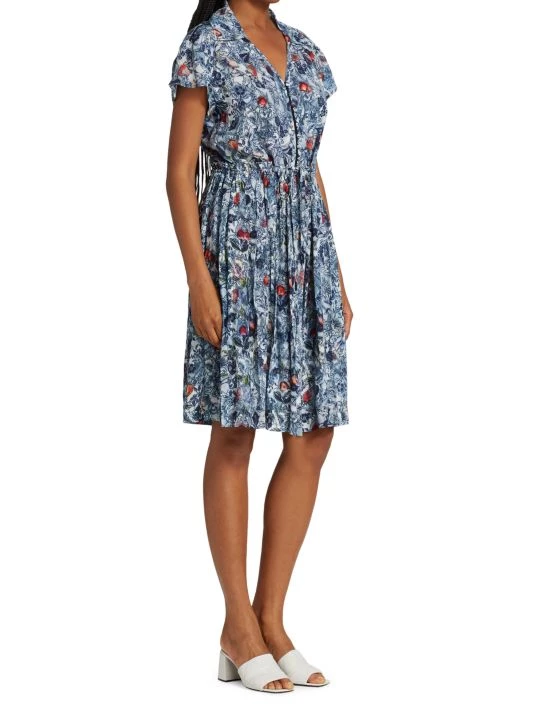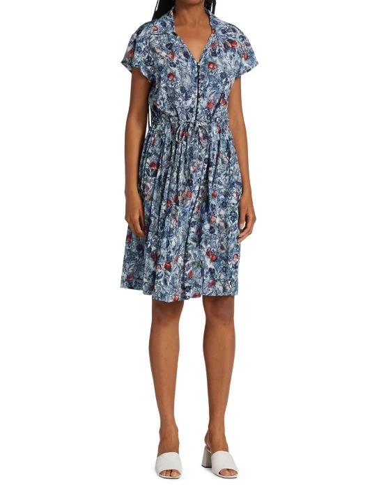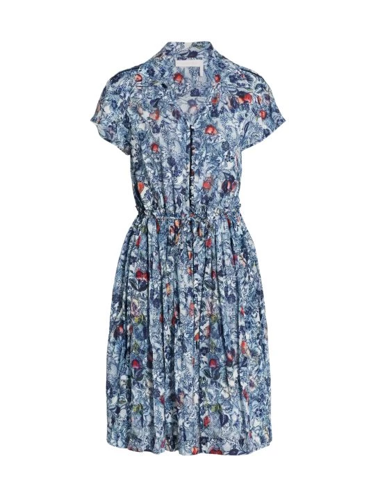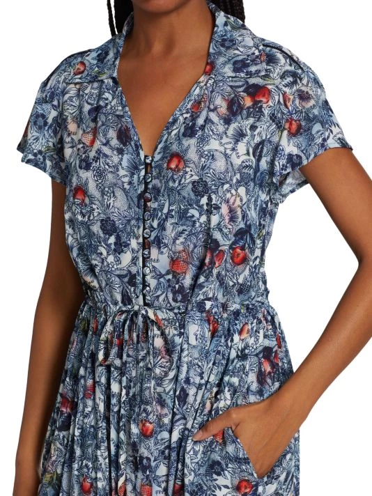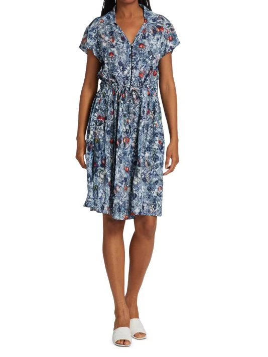 A drawstring defines the waist of this jersey shirtdress, printed with two-tone flowers.