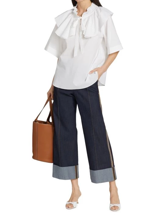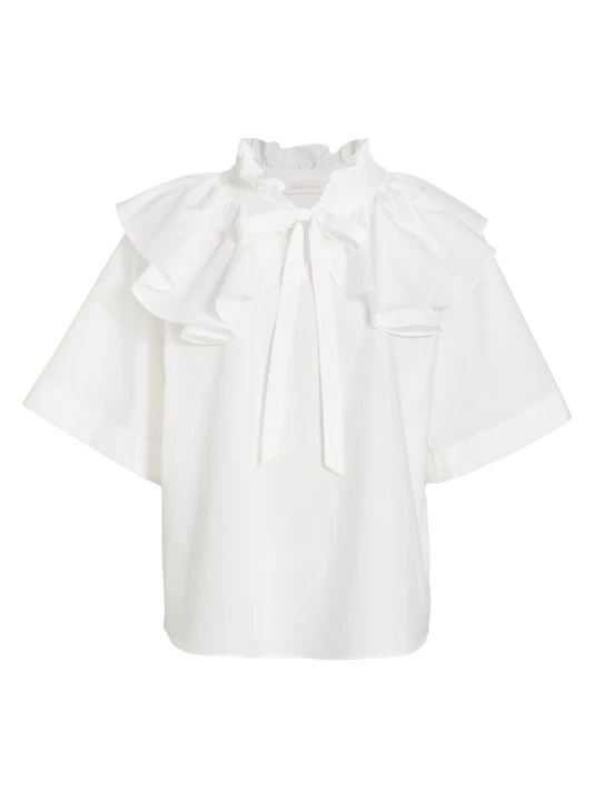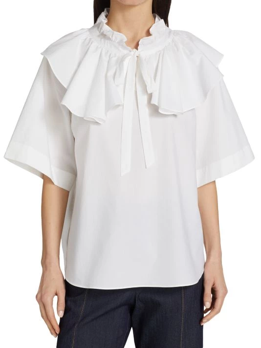 This See by Cholé blouse is crafted of cotton poplin. Designed with exaggerated sleeves, this style is finished with a dramatic ruffled collar.