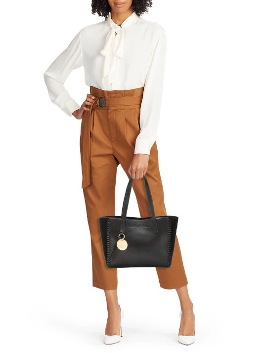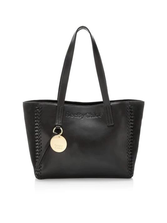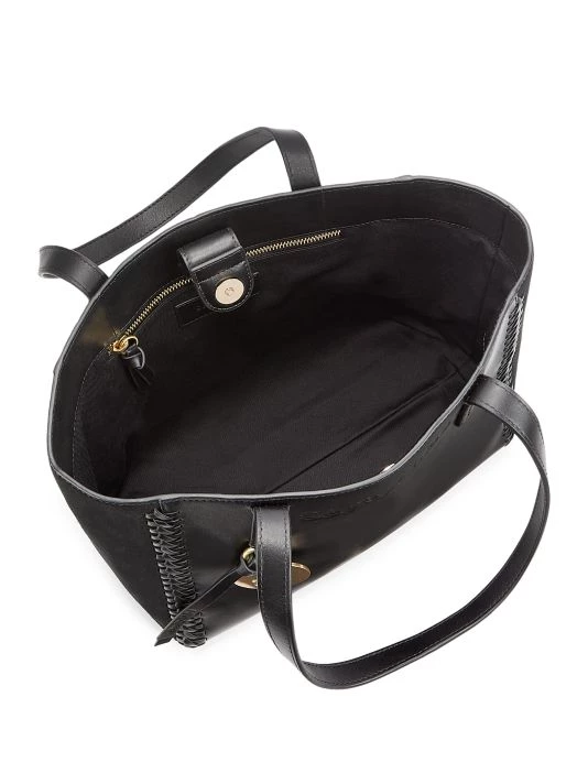 From the Tilda Collection. Smooth leather tote with braided detailing, embossed logo and a goldtone logo charm.