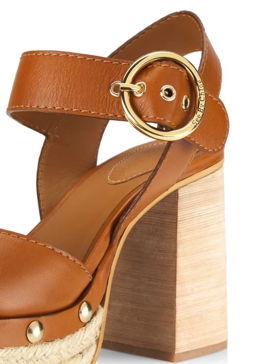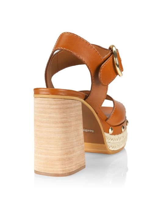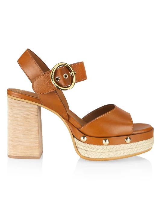Combining espadrille and clog influences, See by Chloé’s Viviane sandals are anchored by a jute-wrapped platform and wooden heel. This rich-leather pair is punctuated with polished studs at the sidewalls.