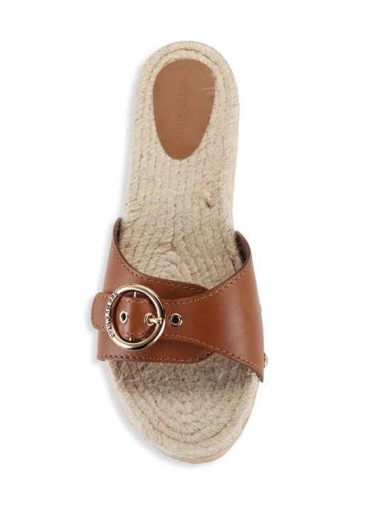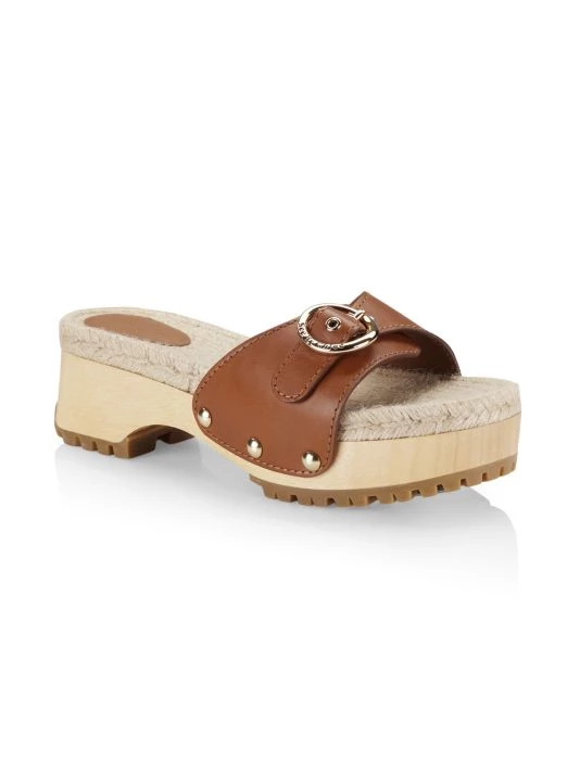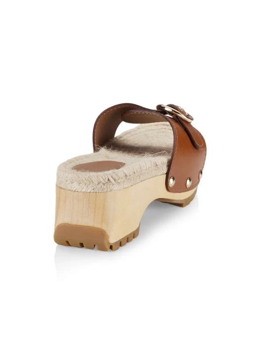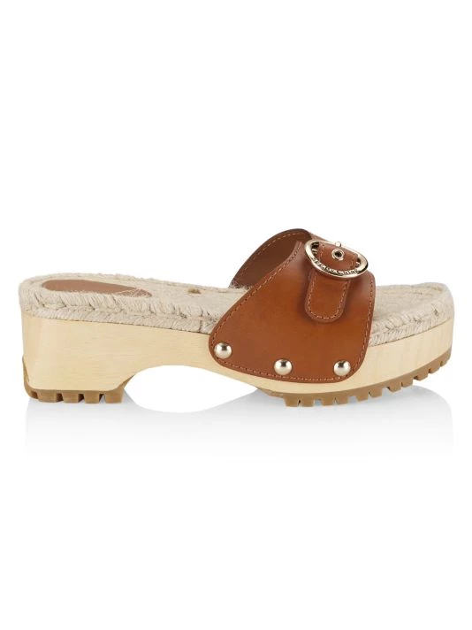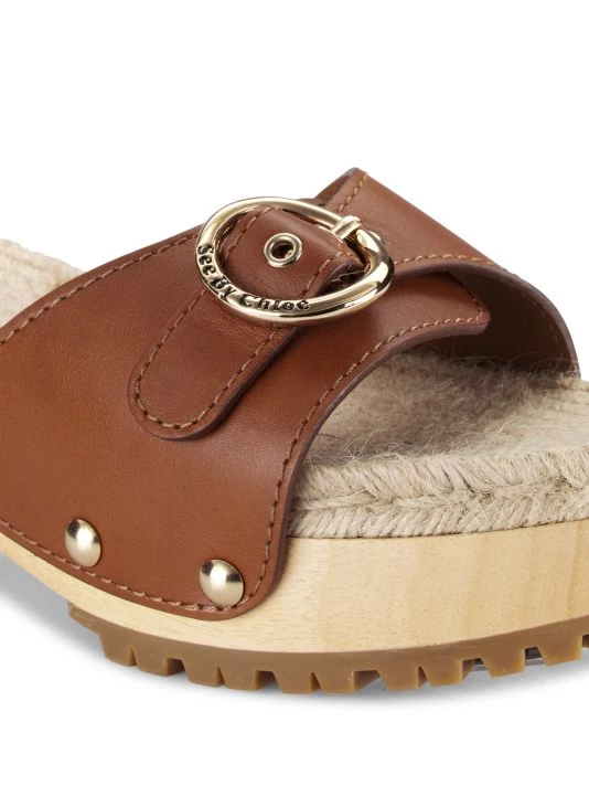 See by Chloé’s Viviane clogs are crafted in Spain of smooth leather with an espadrille insole. These sandals are finished with goldtone studs and a logo-engraved buckle at the vamp.